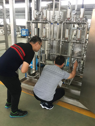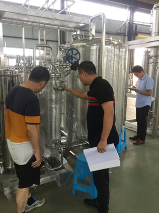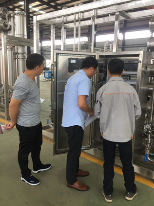 廣東佛山某制藥公司領(lǐng)導(dǎo)一行4人來秋立生產(chǎn)車間對其制水間全套設(shè)備進行工廠驗收,秋立公司劉總親自陪同做現(xiàn)場驗收,驗收期間,領(lǐng)導(dǎo)對秋立制作的純化水機組、多效蒸餾水機、純蒸汽發(fā)生器等設(shè)備表示由衷的滿意,對秋立公司產(chǎn)品精湛的制作工藝表示了欣賞。