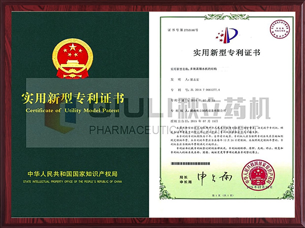 實(shí)用新型專利證書-多效蒸餾水機(jī)的結(jié)構(gòu)