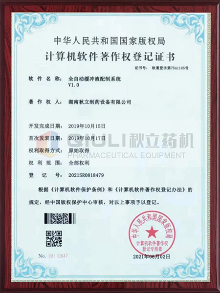 計(jì)算軟件著作權(quán)證登記證書-全自動(dòng)緩沖配夜控制系統(tǒng)